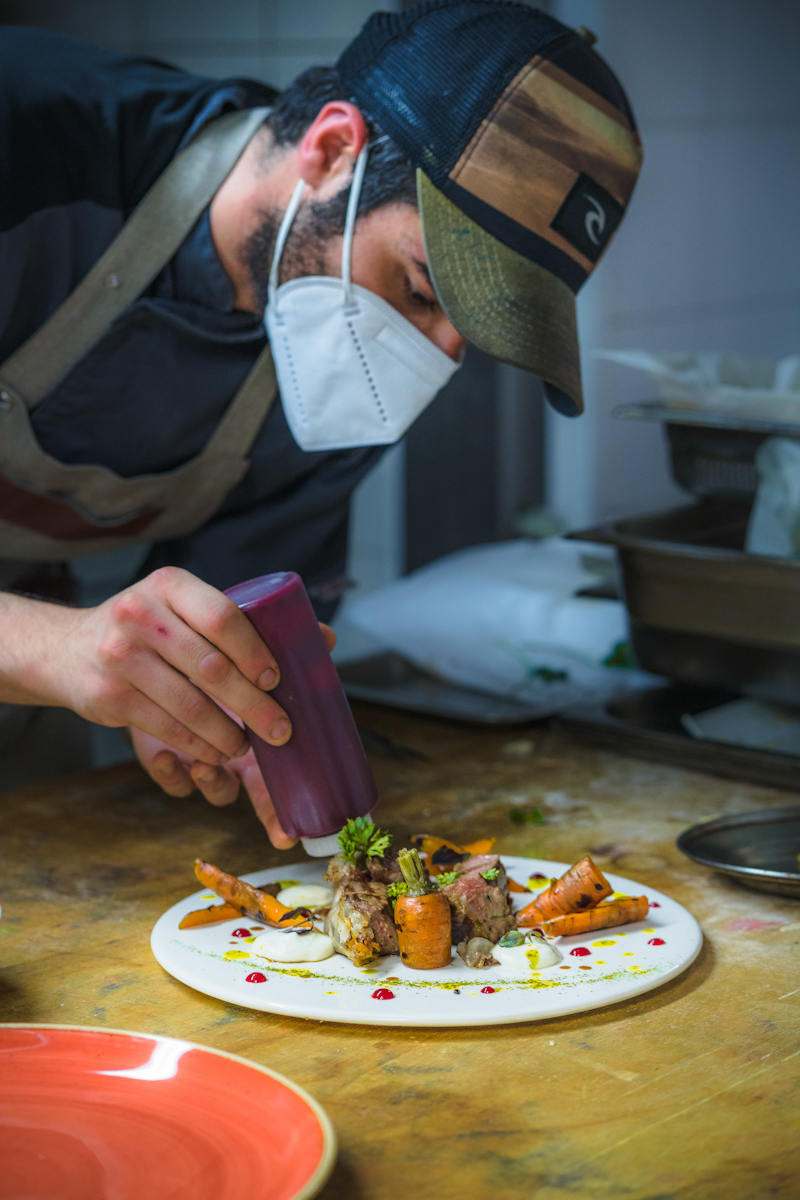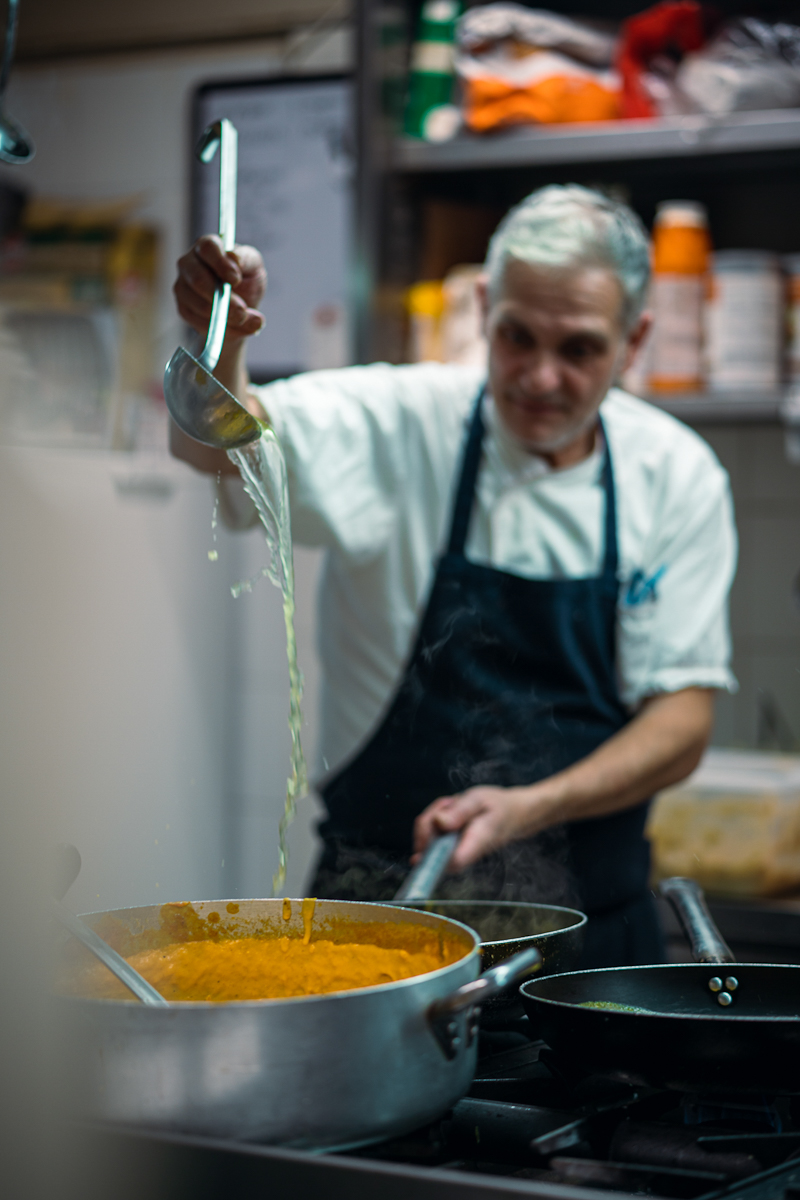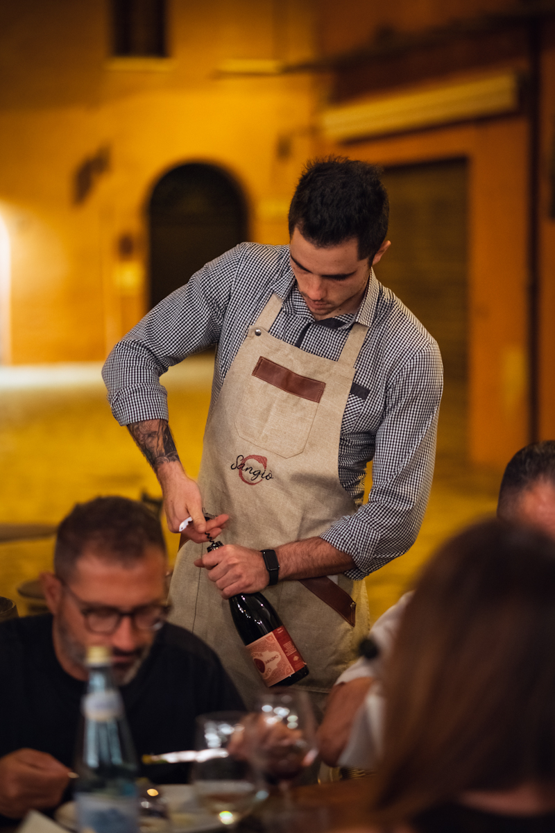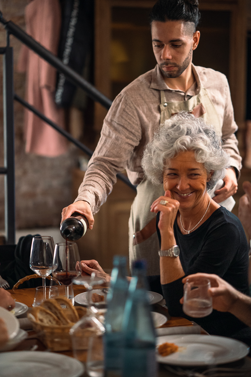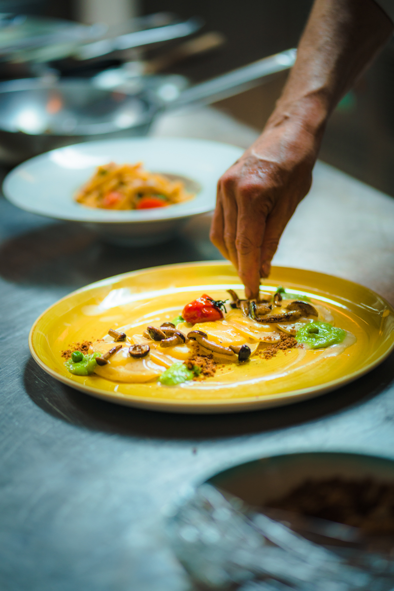 L’immagine del Sangiò Magna e Bè punta a trasmettere convivialità e tradizione, in cui il protagonista è la cucina: di alto livello, prende forma dalla maestria dei cuochi. Il lavoro svolto con loro negli anni ha dato vita a shooting completi, in cui la foto al piatto si unisce con la dinamicità del servizio. La sintonia creata con i proprietari ha permesso, inoltre, la creazione di scatti sempre più ricercati nel tempo per presentare i piatti.