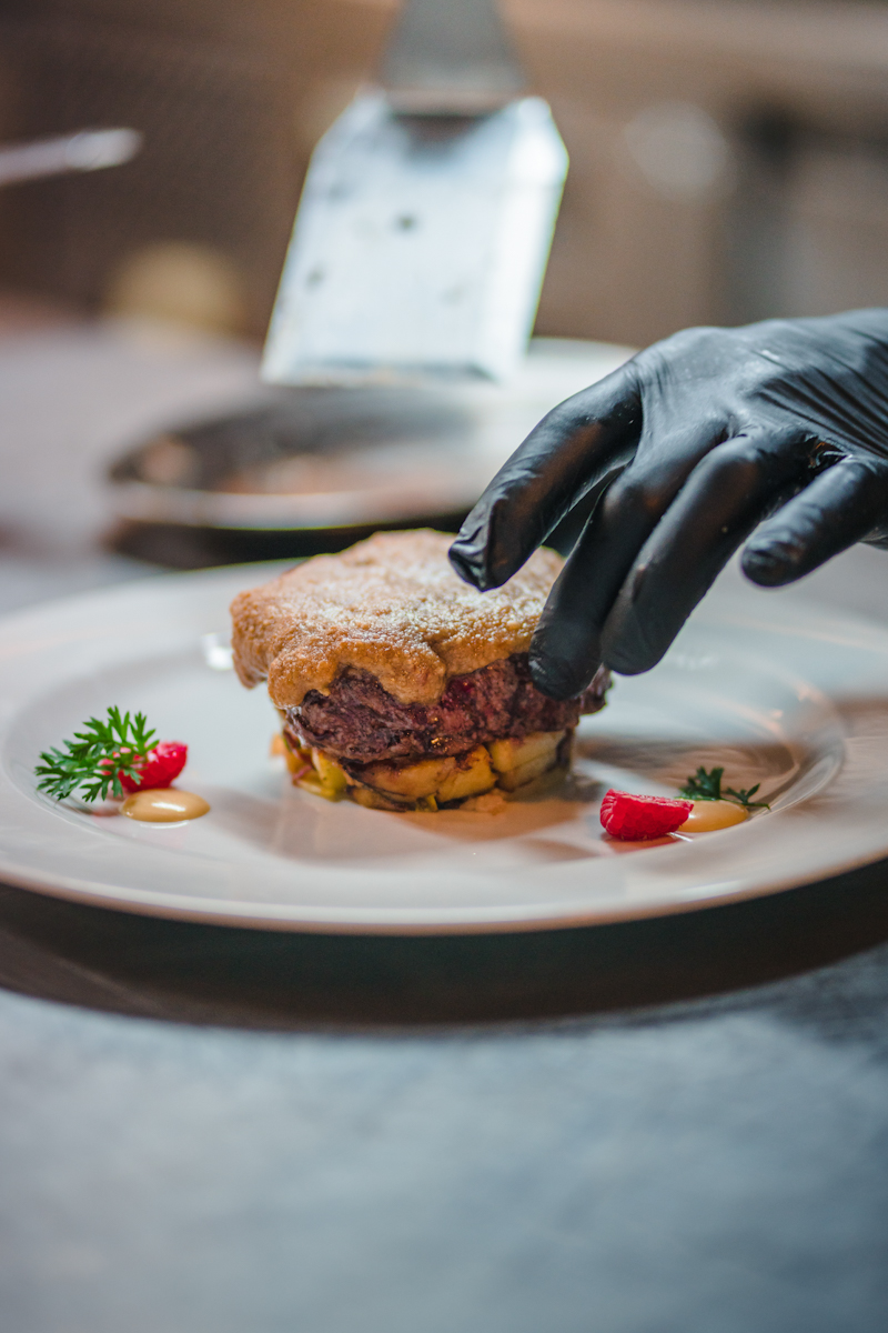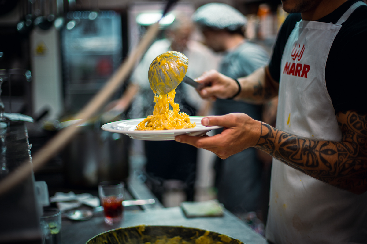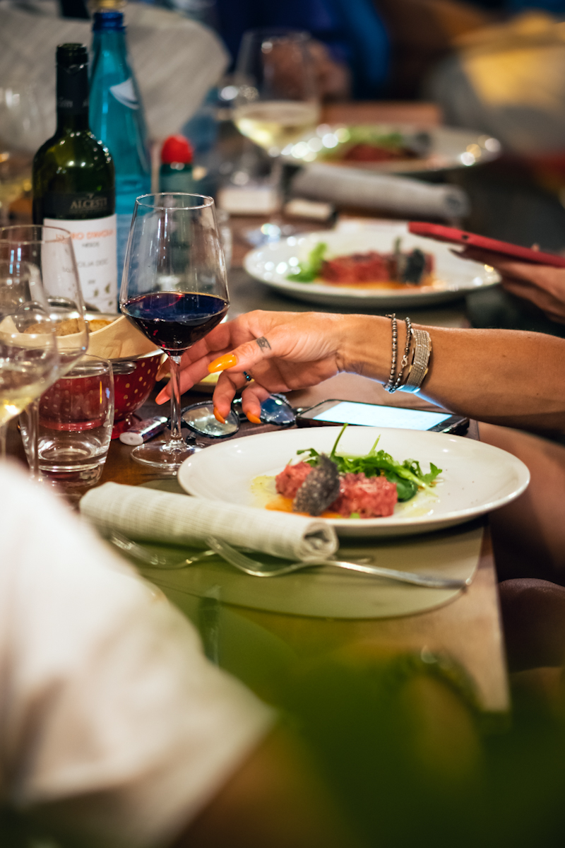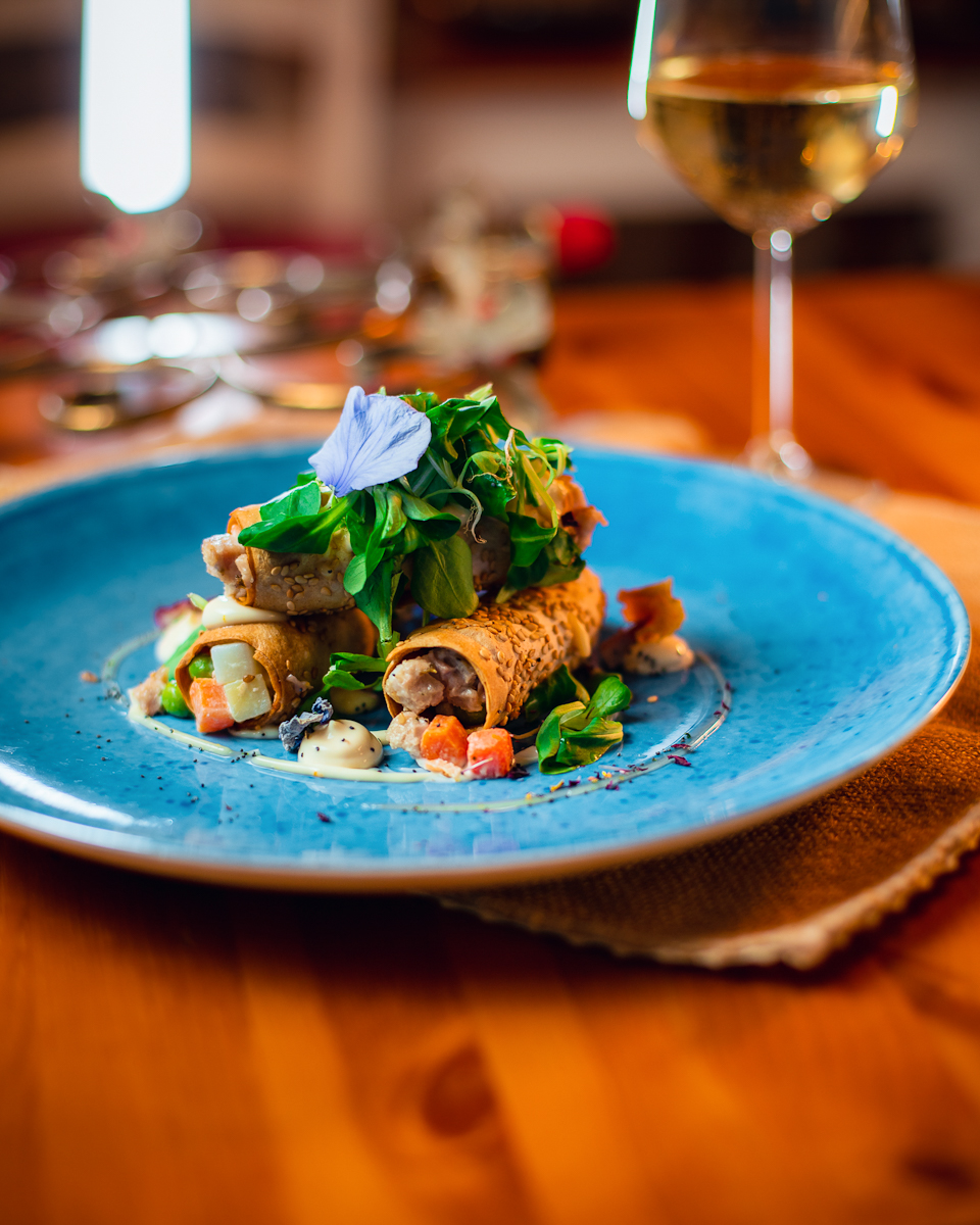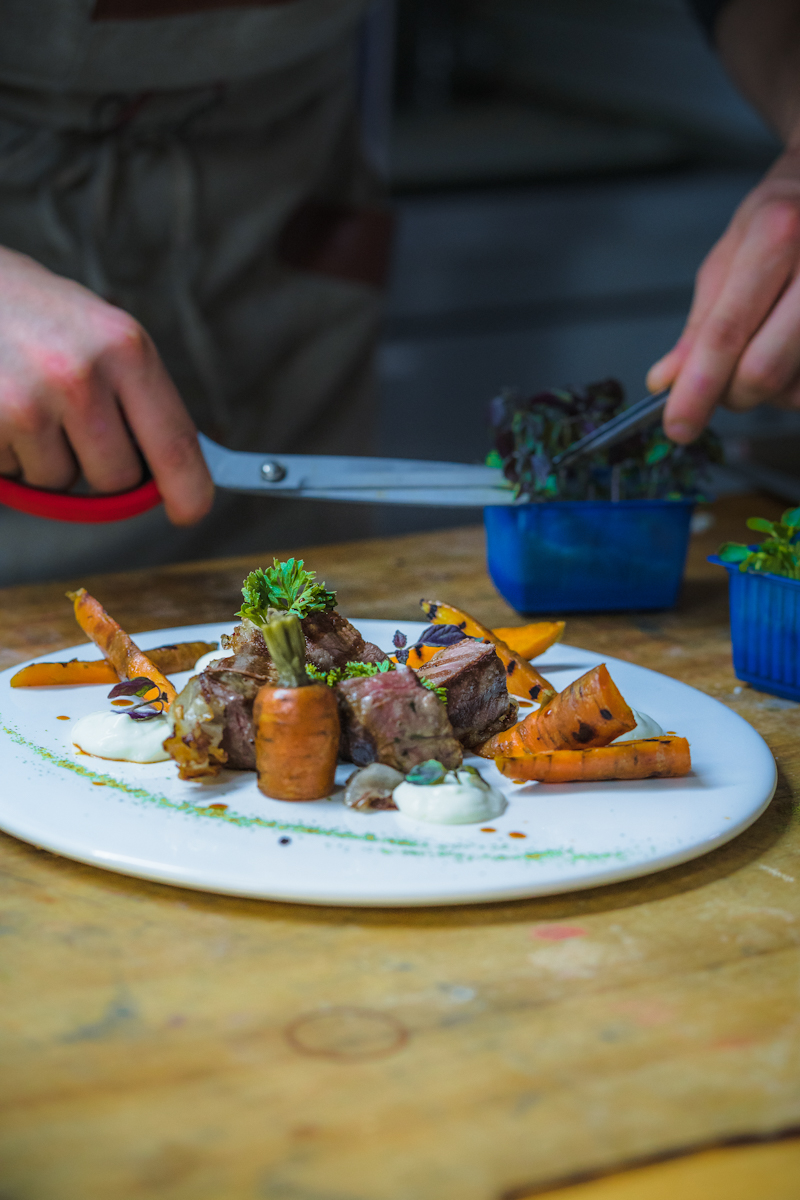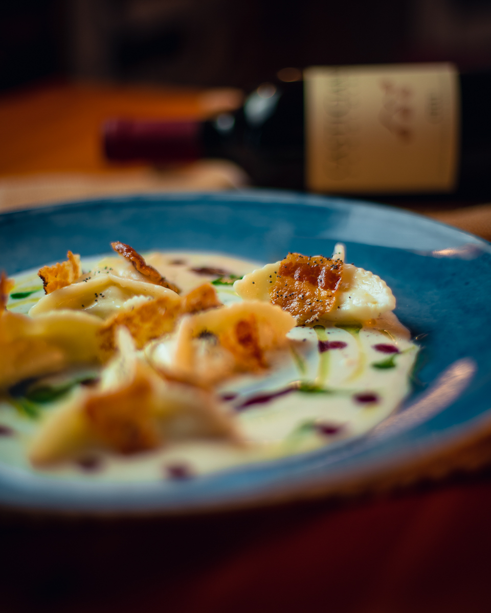 L’immagine del Sangiò Magna e Bè punta a trasmettere convivialità e tradizione, in cui il protagonista è la cucina: di alto livello, prende forma dalla maestria dei cuochi. Il lavoro svolto con loro negli anni ha dato vita a shooting completi, in cui la foto al piatto si unisce con la dinamicità del servizio. La sintonia creata con i proprietari ha permesso, inoltre, la creazione di scatti sempre più ricercati nel tempo per presentare i piatti.